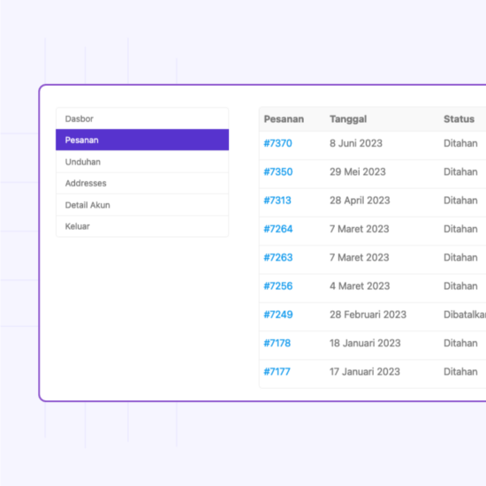 Tersedia halaman akun untuk melanggan melihat histori belanja, mengganti alamat dan mendownload file digital.