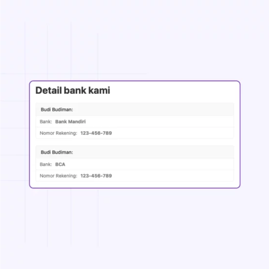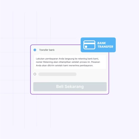 Tersedia metode pembayaran transfer bank manual. Pelanggan harus melakukan konfirmasi jika menggunakan metode ini.