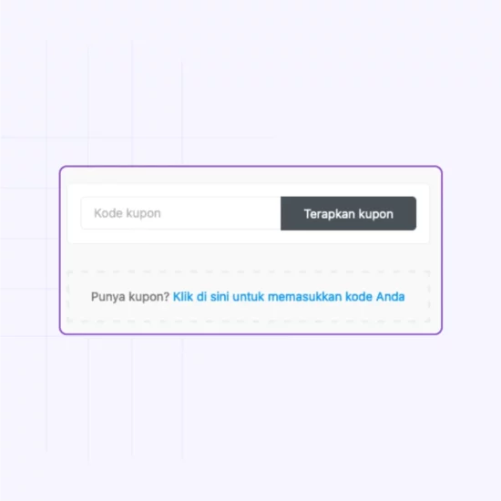 Tersedia fitur kode kupon untuk memberikan promo untuk pelanggan seperti potongan harga atau free ongkir.