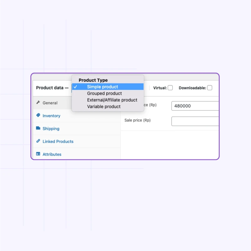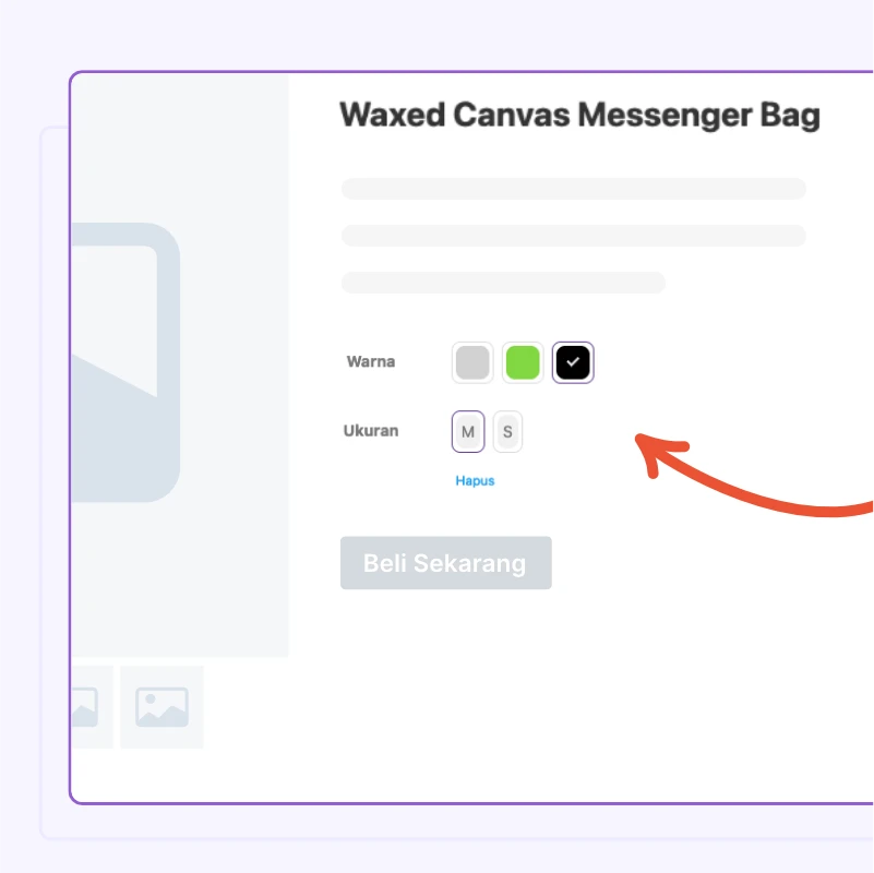 Mendukung produk dengan variasi seperti ukuran, warna, bahan dan lainnya. Anda dapat menambahkan beberapa variasi dalam satu produk.